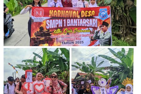 CILACAP,Kabarekpres.SMPN 1 Bantarsari menggelar acara istimewa untuk menyambut Hari Ulang Tahun (HUT) ke-80 2025 Republik Indonesia. Bertajuk “Aku Cinta Indonesia,” perayaan ini tak hanya diisi dengan berbagai perlombaan, tetapi juga dimeriahkan oleh karnaval. Acara ini berlangsung di lingkungan sekolah pada tanggal 17 Agustus 2025.