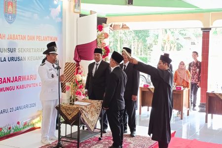 Melaksanakan amanah tugas serta meningkatkan tata kelola keuangan desa yang lebih baik, Desa Banjarwaru menggelar acara pengambilan sumpah jabatan dan pelantikan Perangkat Desa, khususnya untuk jabatan Kepala Urusan Keuangan, pada hari Jumat Kliwon tanggal 23 Januari 2026 di Pendopo Kantor Desa Banjarwaru.
