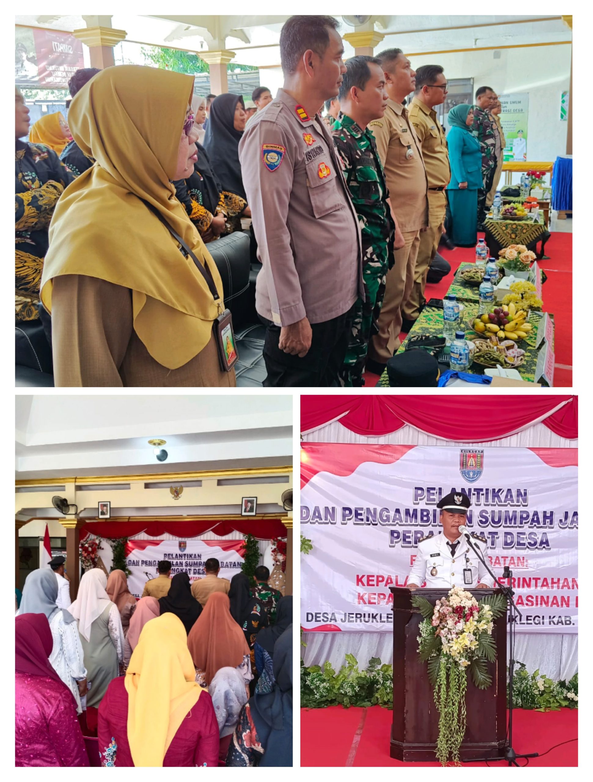 Jeruklegi Kulon, Kabupaten Cilacap, Selasa (06/01/2026) – Desa Jeruklegi Kulon Kecamatan Jeruklegi melaksanakan upacara pelantikan dan pengambilan sumpah jabatan bagi perangkat desa baru, sesuai dengan Persetujuan Pengangkatan Perangkat Desa Nomor 400.10.2/11492/26.