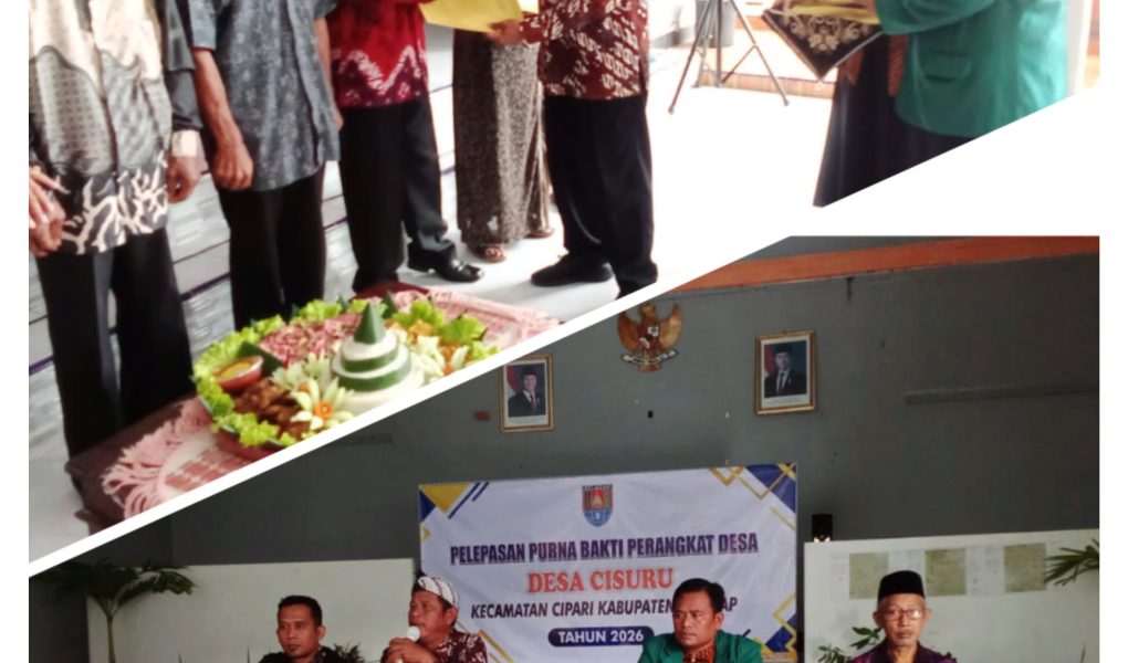 CIPARI, Kabupaten Cilacap – 12 Februari 2026 – Pemerintah Desa Cisuru, Kecamatan Cipari, di bawah kepemimpinan Kepala Desa Kiman Kusdiyanto, menggelar acara purna tugas yang penuh makna bagi Mardiyono pada hari Kamis (12/2). Bertempat di aula balai desa, acara ini menjadi bentuk apresiasi tinggi atas dedikasi beliau yang telah melayani masyarakat selama hampir dua dekade sebagai perangkat desa.