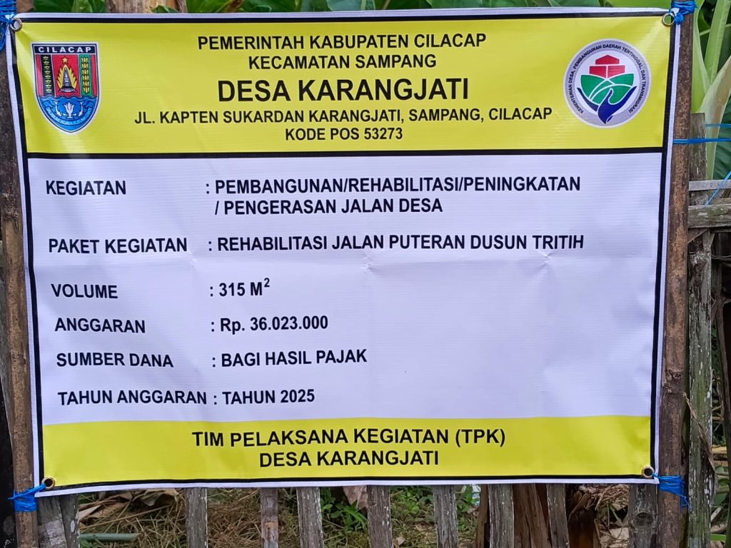 Selasa, 30 Desember 2025 – Desa Karangjati, Kecamatan Sampang, Kabupaten Cilacap, secara resmi melaksanakan kegiatan rehabilitasi, peningkatan, dan pengerasan jalan puteran di Dusun Tritih. Kegiatan yang dikelola oleh Tim TPK Bilung ini ditujukan untuk meningkatkan akses transportasi dan kenyamanan warga sehari-hari.