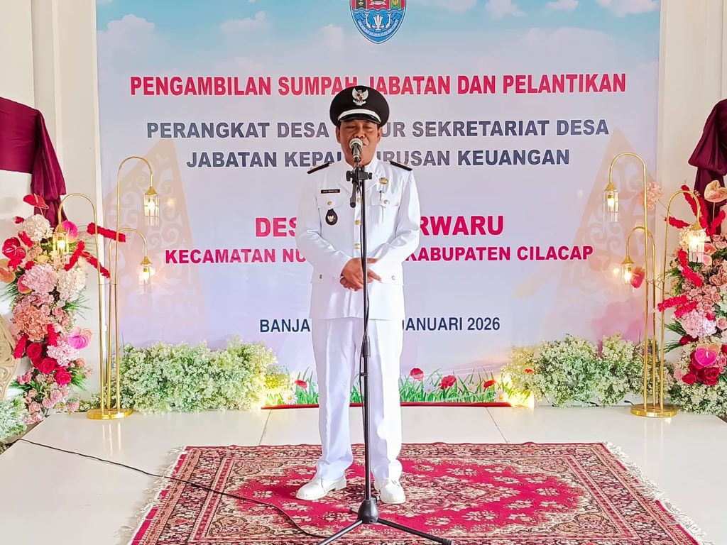 – Camat Nusawungu, Oktafian Panji Setiawan, S.STP., M.AP mengapresiasi proses pelantikan yang tertib dan menekankan pentingnya pengelolaan keuangan desa yang sesuai dengan peraturan yang berlaku.