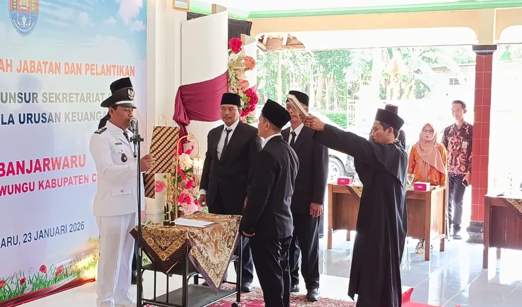 Melaksanakan amanah tugas serta meningkatkan tata kelola keuangan desa yang lebih baik, Desa Banjarwaru menggelar acara pengambilan sumpah jabatan dan pelantikan Perangkat Desa, khususnya untuk jabatan Kepala Urusan Keuangan, pada hari Jumat Kliwon tanggal 23 Januari 2026 di Pendopo Kantor Desa Banjarwaru.
