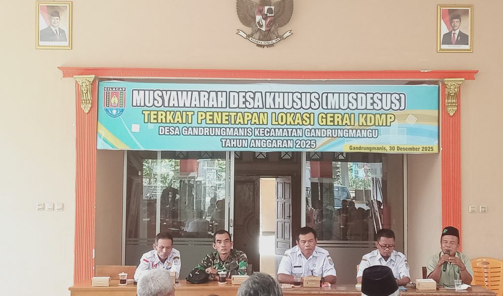 Gandrungmangu, 7 Januari 2026 – Pemerintah Desa Gandrungmanis, Kecamatan Gandrungmangu, menggelar Musyawarah Desa Khusus (MUSDESUS) untuk menetapkan lokasi Gerai Koperasi Desa Merah Putih (KDMP). Acara yang berlangsung di pendopo desa setempat ini dihadiri oleh berbagai elemen masyarakat dan pemerintah, menunjukkan komitmen bersama untuk meningkatkan perekonomian desa.