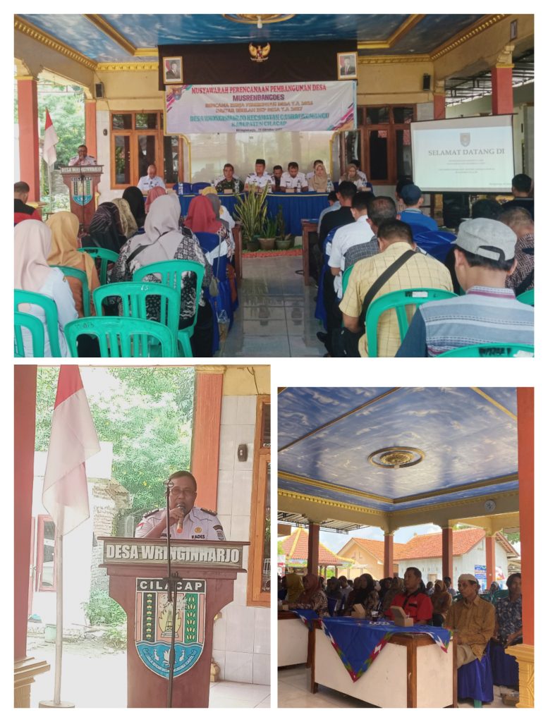 Pada hari Rabu, 15 Oktober 2025, Desa Wringinharjo, Kecamatan Gandrungmangu, menjadi saksi dari semangat gotong royong dan perencanaan partisipatif dalam Musyawarah Perencanaan Pembangunan Desa (Musrenbangdes) untuk Rencana Kerja Pemerintah Desa Tahun Anggaran 2027. Acara ini menjadi forum penting bagi warga desa untuk menyuarakan aspirasi dan kebutuhan mereka, serta merumuskan program-program pembangunan yang akan membawa manfaat nyata bagi seluruh masyarakat.