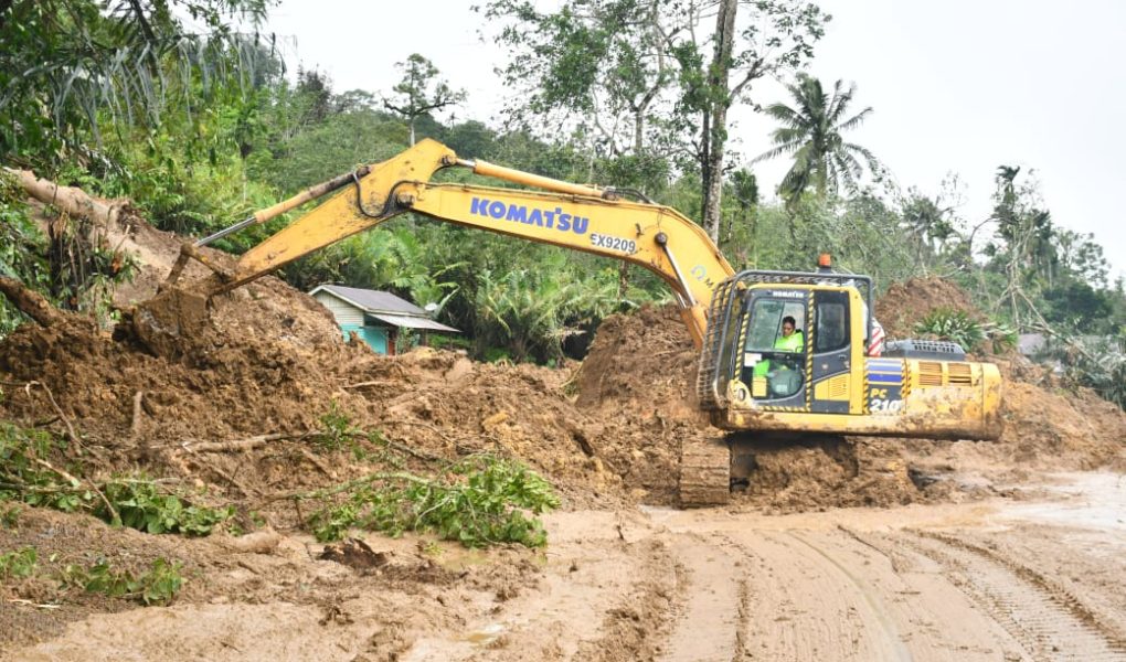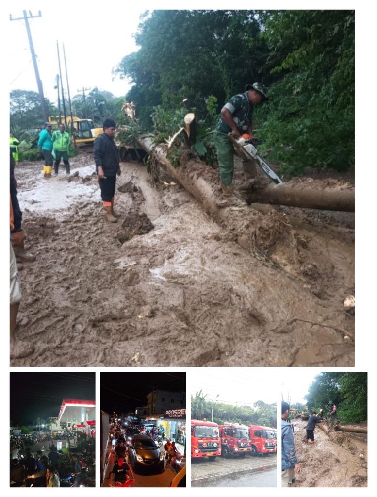 Longsor terjadi akibat curah hujan tinggi yang mengguyur wilayah tersebut sejak malam sebelumnya. Material lumpur tebal serta batang pohon besar memenuhi badan jalan dan mengakibatkan kendaraan tidak dapat melintas. Aparat gabungan langsung melakukan penanganan dengan memotong batang pohon dan mengeruk lumpur menggunakan alat berat maupun peralatan manual agar jalan dapat dibuka kembali.