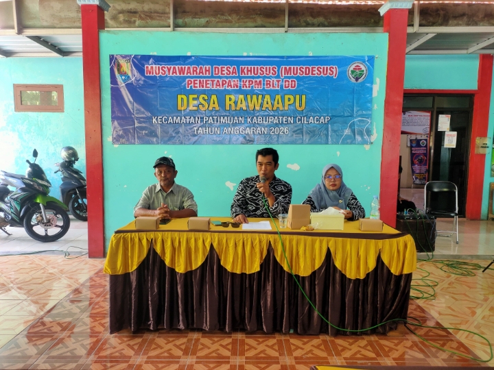 PATIMUAN, CILACAP – Pemerintah Desa Rawaapu menggelar Musyawarah Desa Khusus (Musdesus) dalam rangka penetapan Keluarga Penerima Manfaat (KPM) Bantuan Langsung Tunai Dana Desa (BLT DD) Tahun Anggaran 2026.