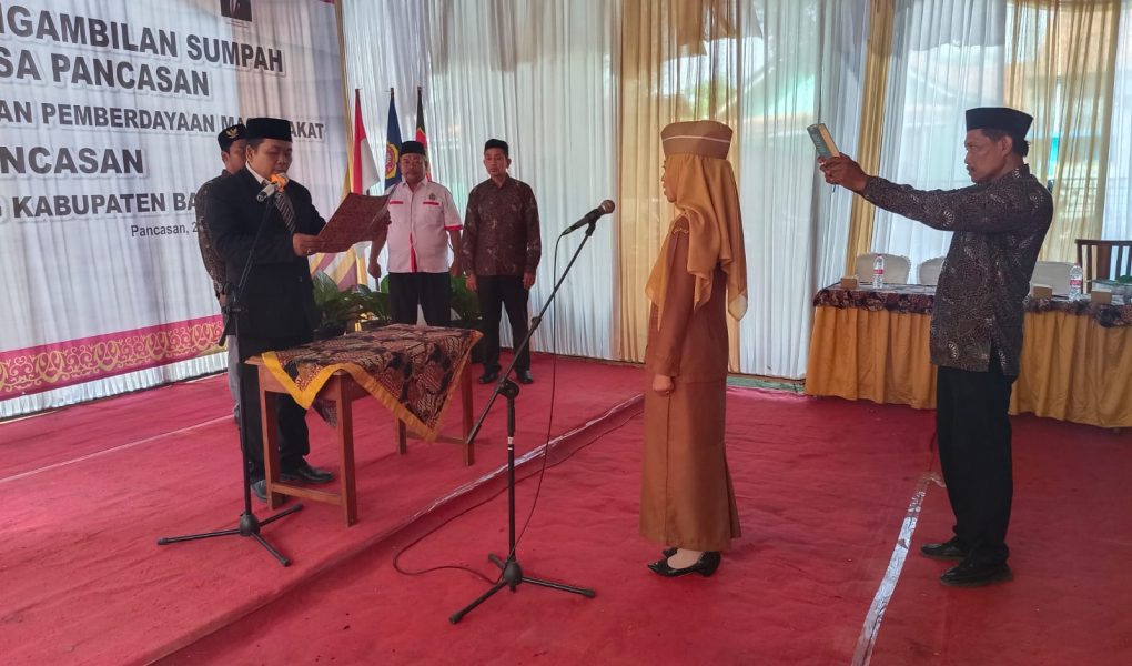 Pancasan – Suasana khidmat dan penuh harapan mewarnai Aula Desa Pancasan pada hari Selasa, 23 September 2025, saat berlangsung acara pengambilan sumpah dan pelantikan perangkat desa. Tika Fatikhatul Jannah resmi menduduki jabatan Kepala Seksi Kesejahteraan Desa Pancasan, berdasarkan Surat Keputusan Kepala Desa Nomor 141/31/2025. Acara yang dimulai pukul 13.00 WIB ini dihadiri oleh berbagai elemen masyarakat dan pemerintahan.