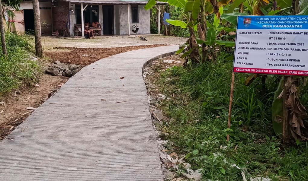 Cilacap, 2 Desember 2025 – Desa Karanganyar, Kecamatan Gandrungmangu, Kabupaten Cilacap, memulai proyek pembangunan rabat beton di RT 03/01, Dusun Pengampiran. Proyek ini didanai sepenuhnya dari Dana Desa tahun 2025 dengan total anggaran sebesar Rp 50.676.000, yang mencakup pajak, biaya operasional, dan honor pekerja.