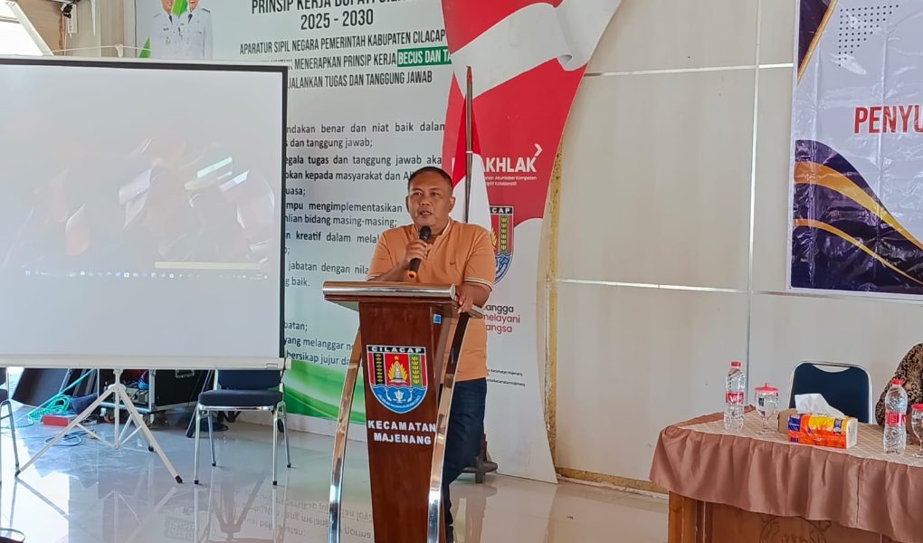 Kemudian, Camat Majenang Aji Purnomo, S.STP.,MM., dalam sambutannya menekankan pentingnya APBDesa sebagai alat pengendali keuangan desa yang efektif untuk mendukung pembangunan dan kesejahteraan warga. Ia juga mengapresiasi kehadiran semua perangkat desa yang antusias mengikuti acara ini.