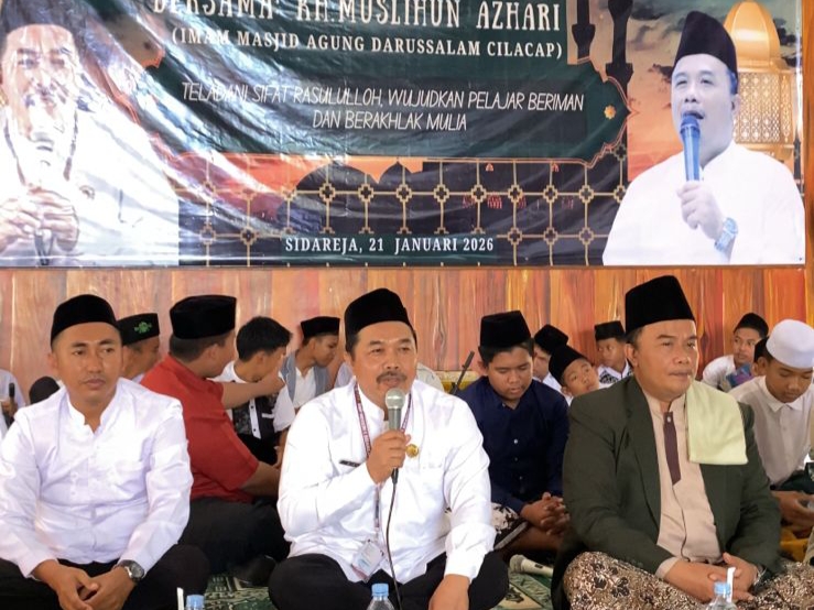 SIDAREJA Kabarekpres .co.id/SMP Negeri 1 Sidareja menggelar peringatan hari besar Islam, Isra Mi’raj Nabi Muhammad SAW 1447 H, pada Rabu (21/01/2026). Kegiatan yang dipusatkan di Aula SMPN 1 Sidareja ini berlangsung dengan suasana yang sederhana namun tetap sarat akan kekhidmatan.