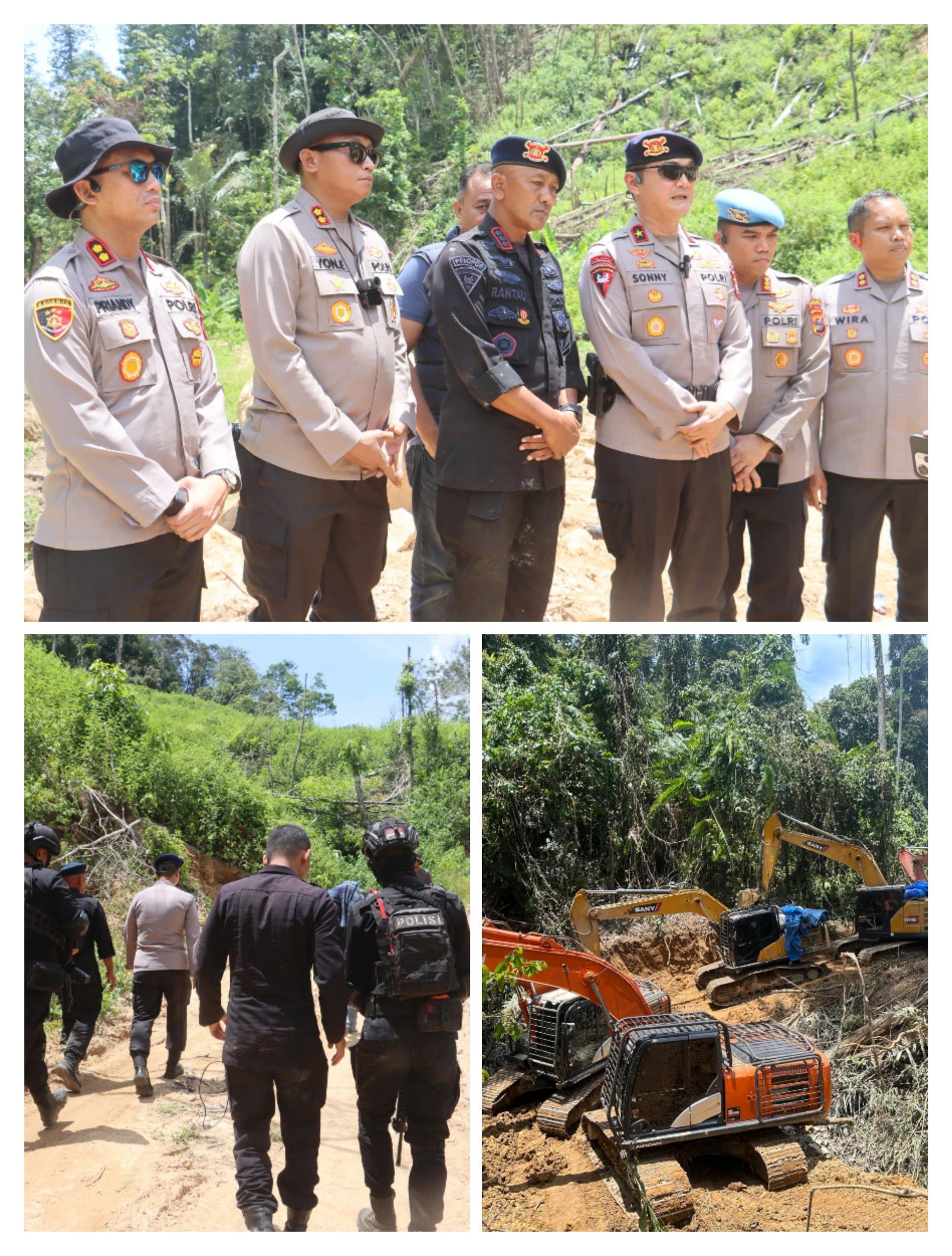 Penindakan yang dilakukan tim gabungan Satuan Brimob dan Direktorat Reserse Kriminal Khusus (Ditreskrimsus) tersebut melibatkan lebih dari 200 personel. Dalam operasi itu, aparat mengamankan 17 orang yang diduga terlibat serta menyita 14 unit alat berat jenis ekskavator, masing-masing 12 unit di lokasi tambang dan dua unit saat dalam perjalanan menuju area penambangan.