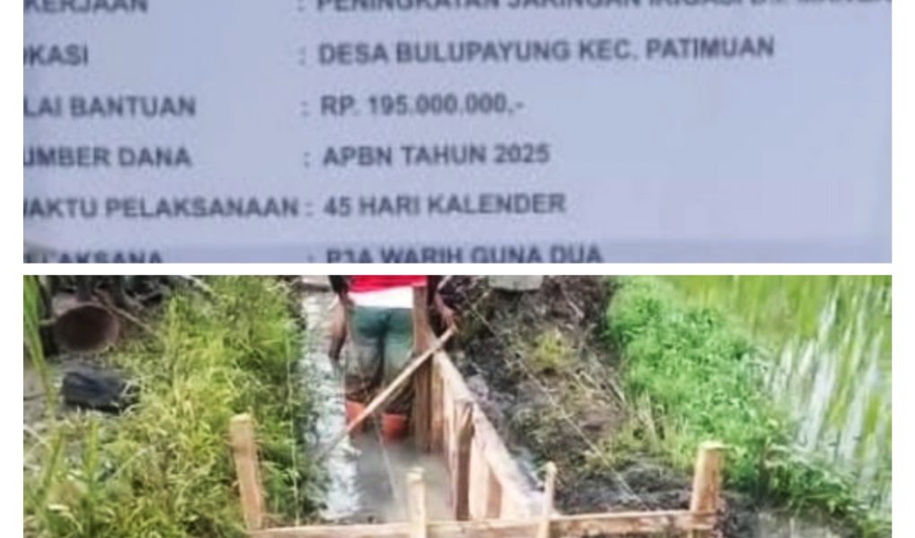 Proyek ketahanan pangan yang dikelola oleh Kelompok P3TGAI warih guna dua,(Perkumpulan Petani Pemakai Air) Desa Bulupayung, Kecamatan Patimuan, diduga dikerjakan secara asal-asalan. Pengerjaan proyek yang semestinya bertujuan untuk memperkuat ketahanan pangan dan infrastruktur irigasi di wilayah tersebut justru menuai kritik dari masyarakat setempat. Proyek ini mencakup pembangunan dan perbaikan saluran irigasi yang sangat vital bagi sektor pertanian.