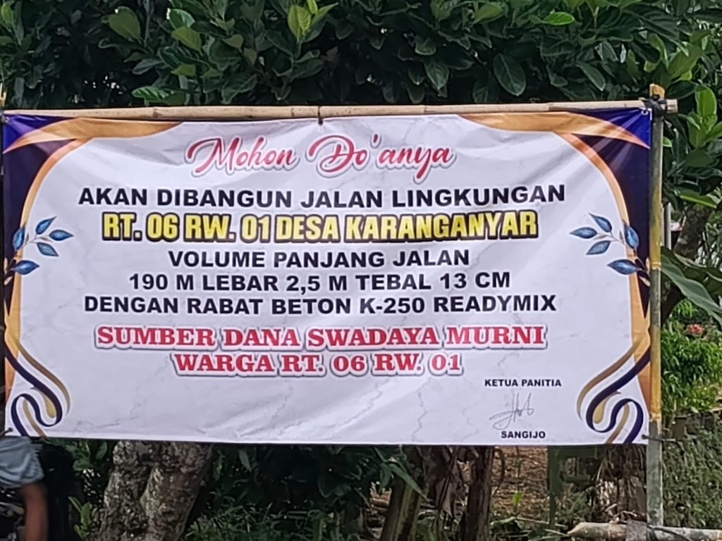 Semoga pembangunan ini berjalan lancar, aman, dan membawa berkah bagi seluruh keluarga besar RT 06 RW 01 serta masyarakat Desa Karanganyar pada umumnya,…..nek di up kadese ringsek