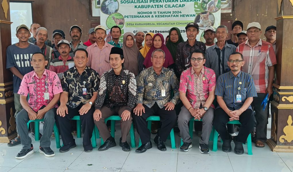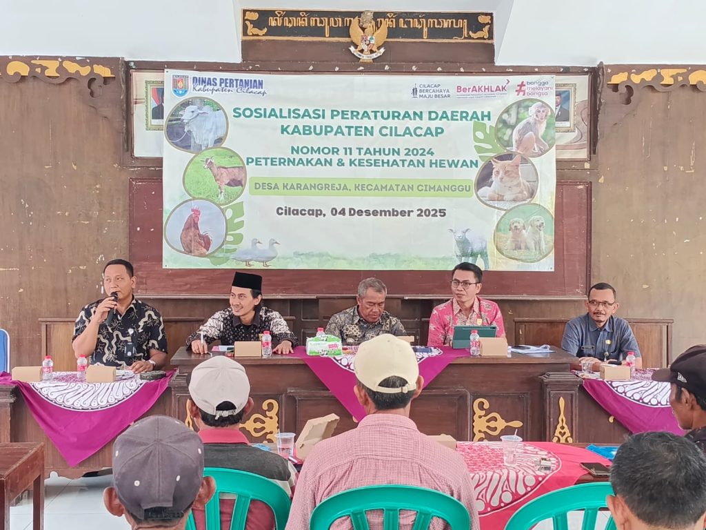 Desa Karangreja, Kecamatan Cimanggu, Kabupaten Cilacap – Pemerintah Desa Karangreja melalui Dinas Pertanian dan Peternakan menggelar Sosialisasi Peraturan Daerah (Perda) Kabupaten Cilacap Nomor 11 Tahun 2024 tentang Penyelenggaraan Peternakan dan Kesehatan Hewan, pada Kamis (4/12/2025) di Aula Pendopo Balai Desa Karangreja. Acara yang dihadiri oleh anggota peternakan di desa ini bertujuan memberikan pemahaman tentang aturan baru yang bertujuan mengoptimalkan pengelolaan ternak dan pencegahan penyakit hewan.