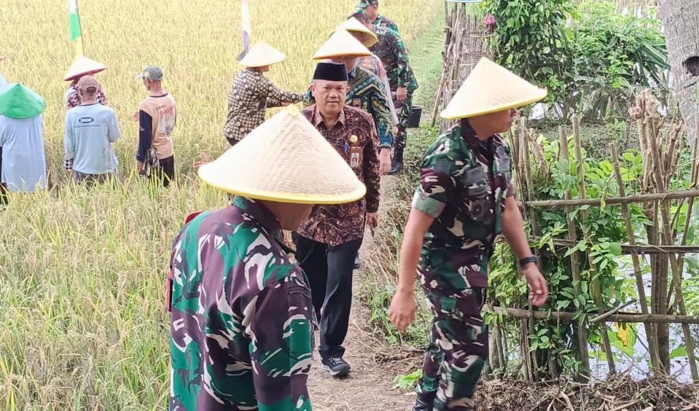 Sebelum pelaksanaan upacara, rombongan melaksanakan panen padi IP 300 di Gapoktan Ngudi Mulya seluas 33 H.